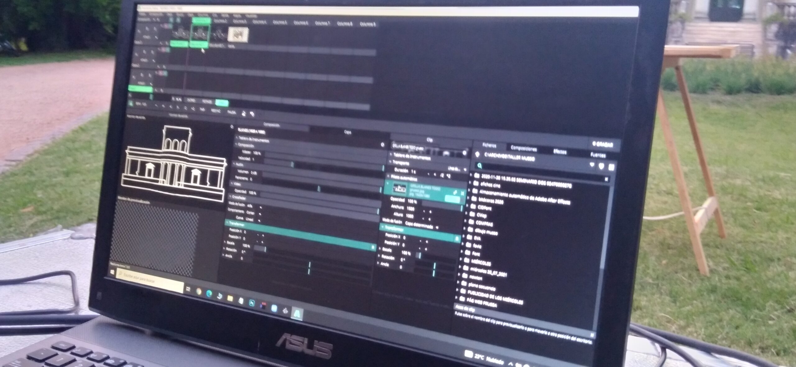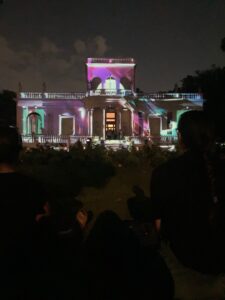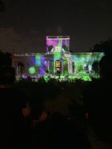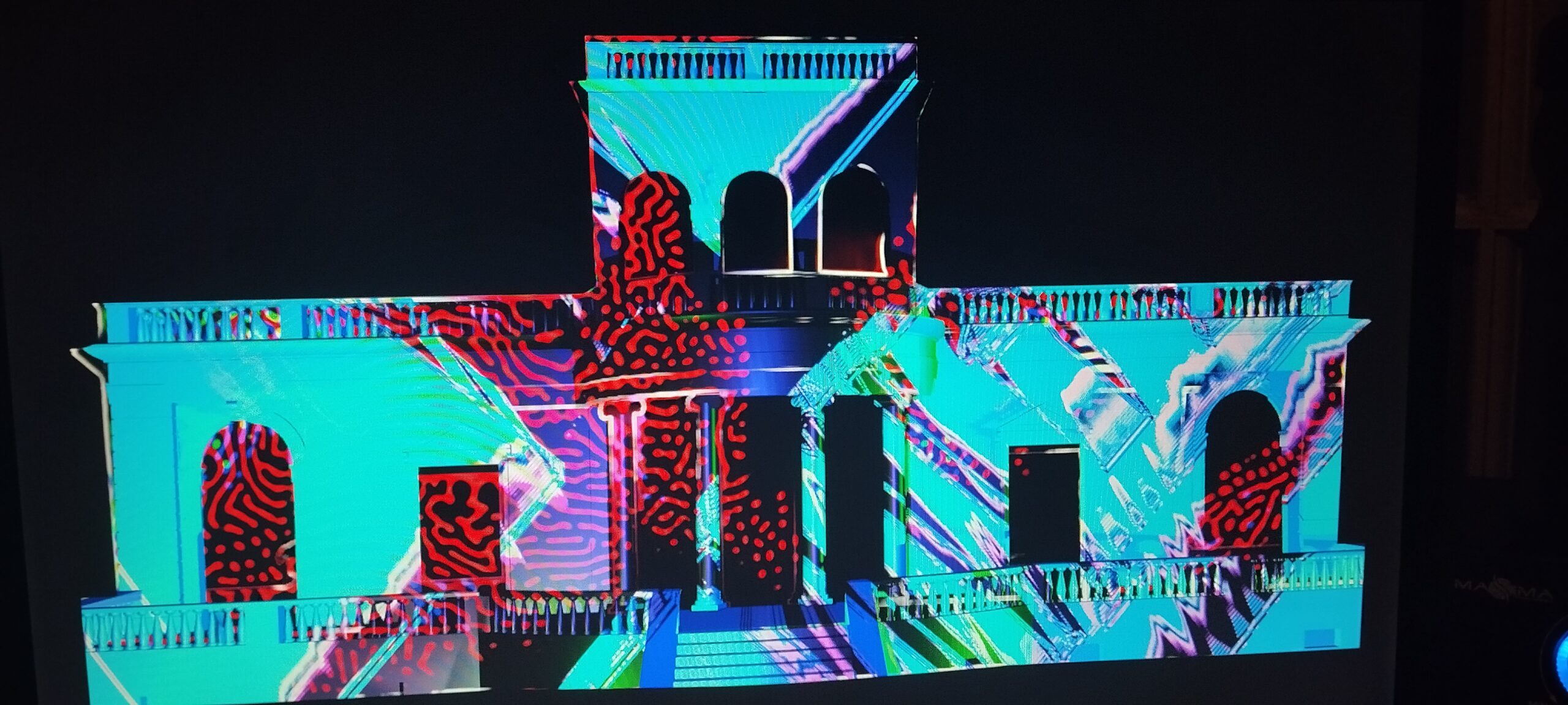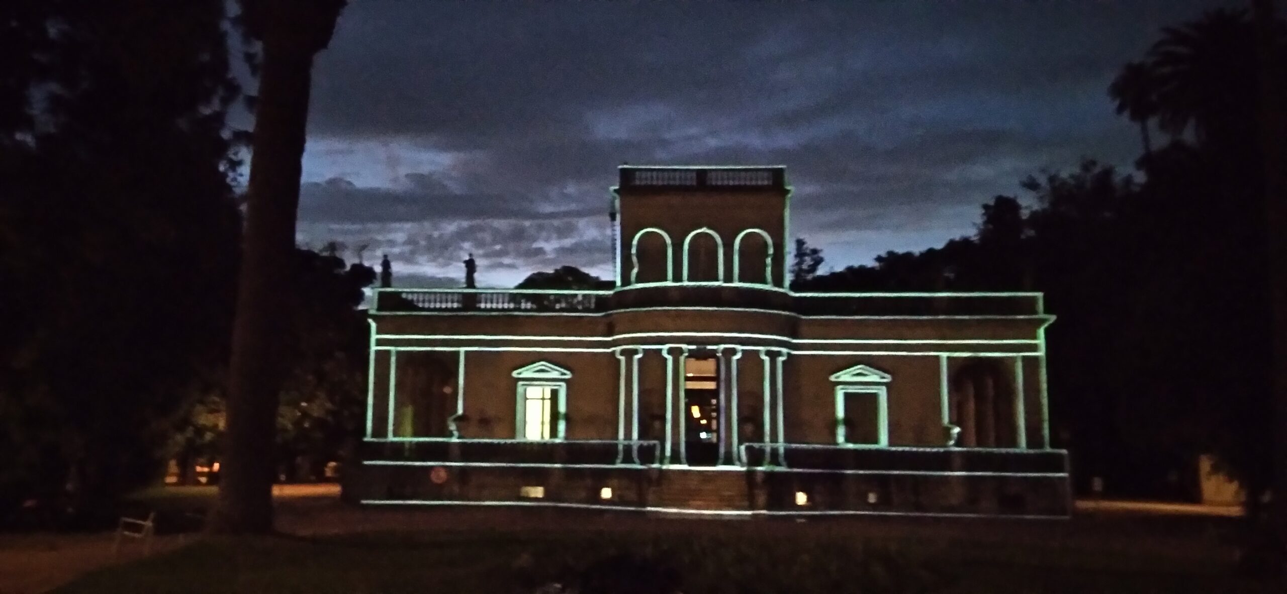 Performance de videoproyección en tiempo real realizada en el marco de la «Noche de los Museos» sobre la fachada del Museo Juan Manuel Blanes (Montevideo, Uruguay) en 2024.